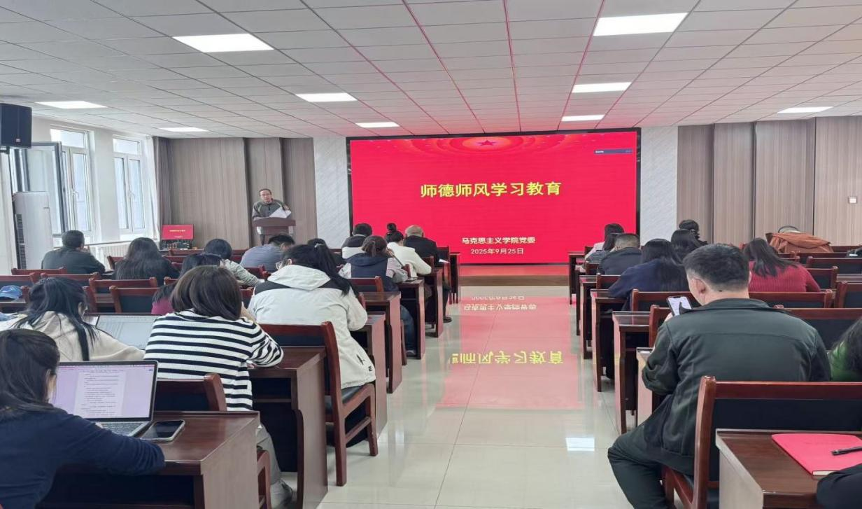 为规范我院教师履职尽责行为,落实立德树人根本任务,弘扬新时代教师道德风尚,2025年9月25日下午,马克思主义学院在秋实楼扩505会议室开展师德师风学习教育,学院领导及全体教职工参加了本次活动。