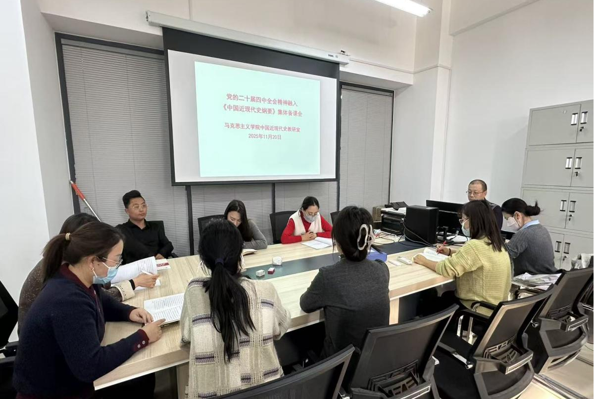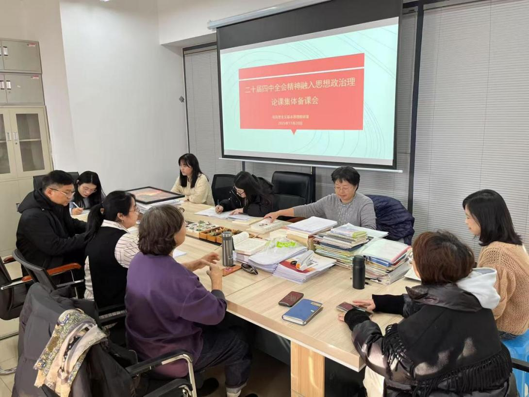为扎实推动党的二十届四中全会精神系统融入思政课教学,切实提升思政课教学的时效性与针对性,马克思主义学院于近日以教研室为单位组织开展专题集体备课会。各教研室主任与专任教师共同参与,围绕全会精神如何融入各门思政课展开深度研讨。