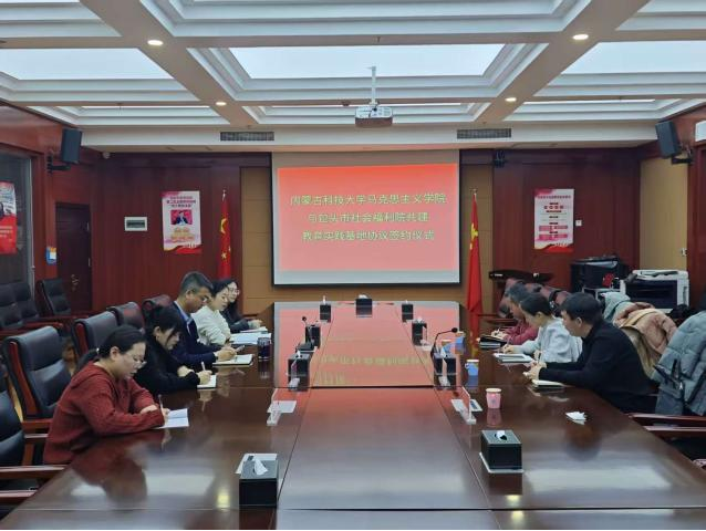 2026年1月16日,内蒙古科技大学马克思主义学院与包头市社会福利院共建教育实践基地协议签约仪式在包头市社会福利院隆重举行。内蒙古科技大学马克思主义学院党委副书记兼副院长贾磊、副院长杨哲、学团办主任范炜、思政系主任李嘉伟,包头市社会福利院党委书记、院长温伟、副院长李升媛共同出席仪式,并就建设教育实践基地及进一步加强校地合作开展了座谈交流。此次协议的签署标志着双方在人才培养、社会服务、专业实践等领域的深度合作正式启动,为马克思主义理论专业人才培养与边疆地区民生福利事业高质量发展注入新动能。