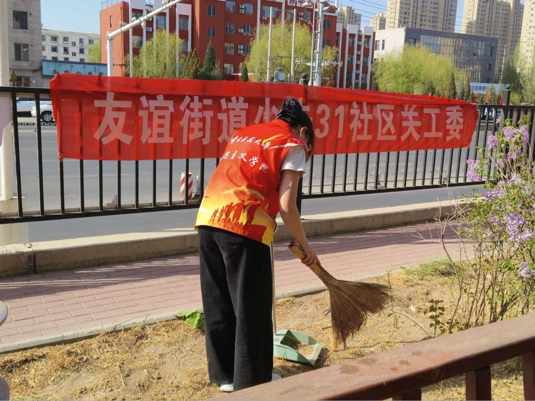 为践行志愿服务精神,履行青年社会责任,美化社区人居环境,贯彻志愿服务理念,增强青年学生的社会责任感与奉献意识,4月18日上午,马克思主义学院学子走进友谊街道少先31社区79小区,开展环境卫生清扫志愿服务活动,用实际行动为社区环境提质增靓。